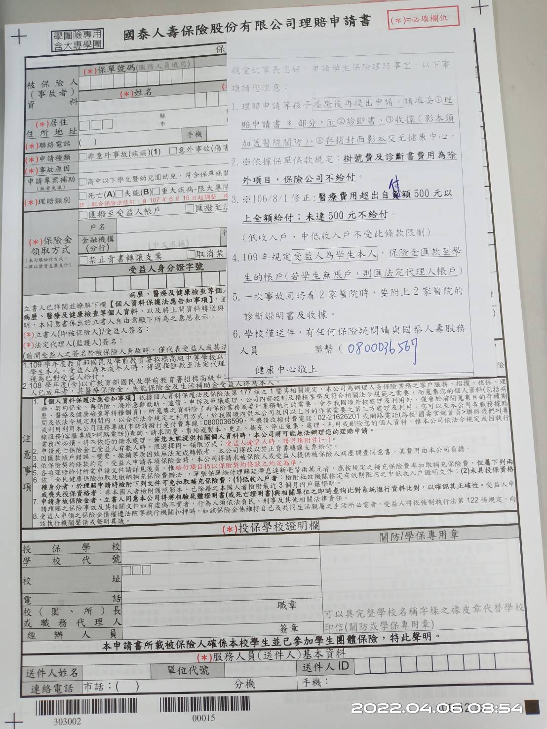 20220406學生平安保險申請單 取得連結 Facebook X Pinterest 以電子郵件傳送 其他應用程式 - 4月 05, 2022 學生平安保險申請如有需要請上班時間跟健康中心領取或上國泰人壽學保網站下載請痊癒後開診斷書再申請掛號費及診斷書費用為除外項目,保險公司不給付申請時間為傷病過後2年內可以申請如有疑問可詢問學保免付費電話:0800036567 取得連結 Facebook X Pinterest 以電子郵件傳送 其他應用程式 留言